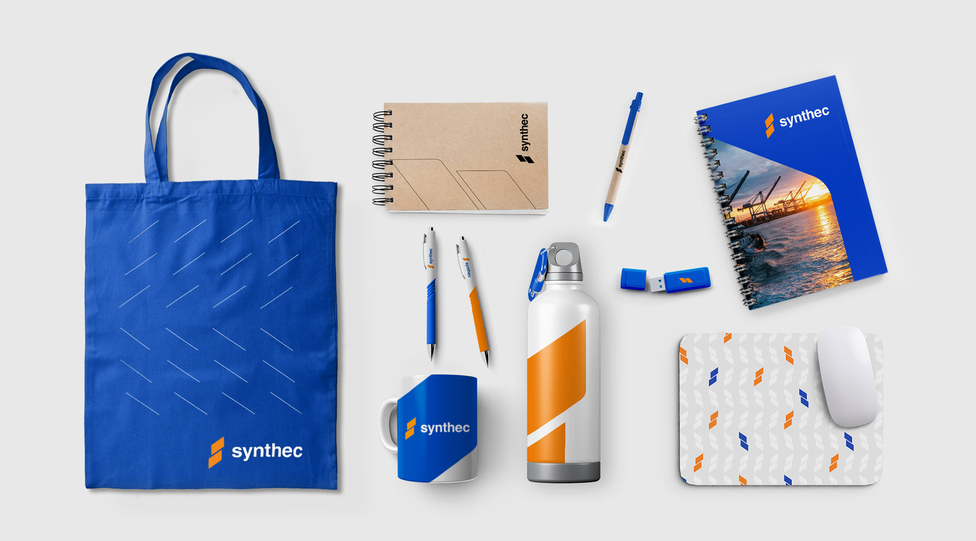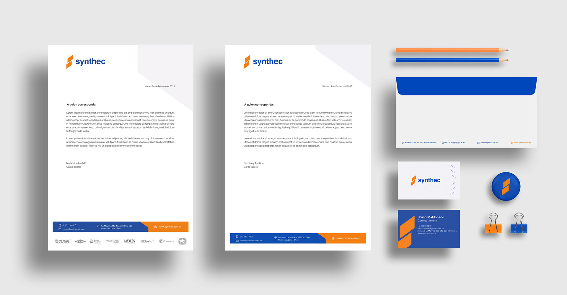 Elaboración de papelería y merchandising para Synthec